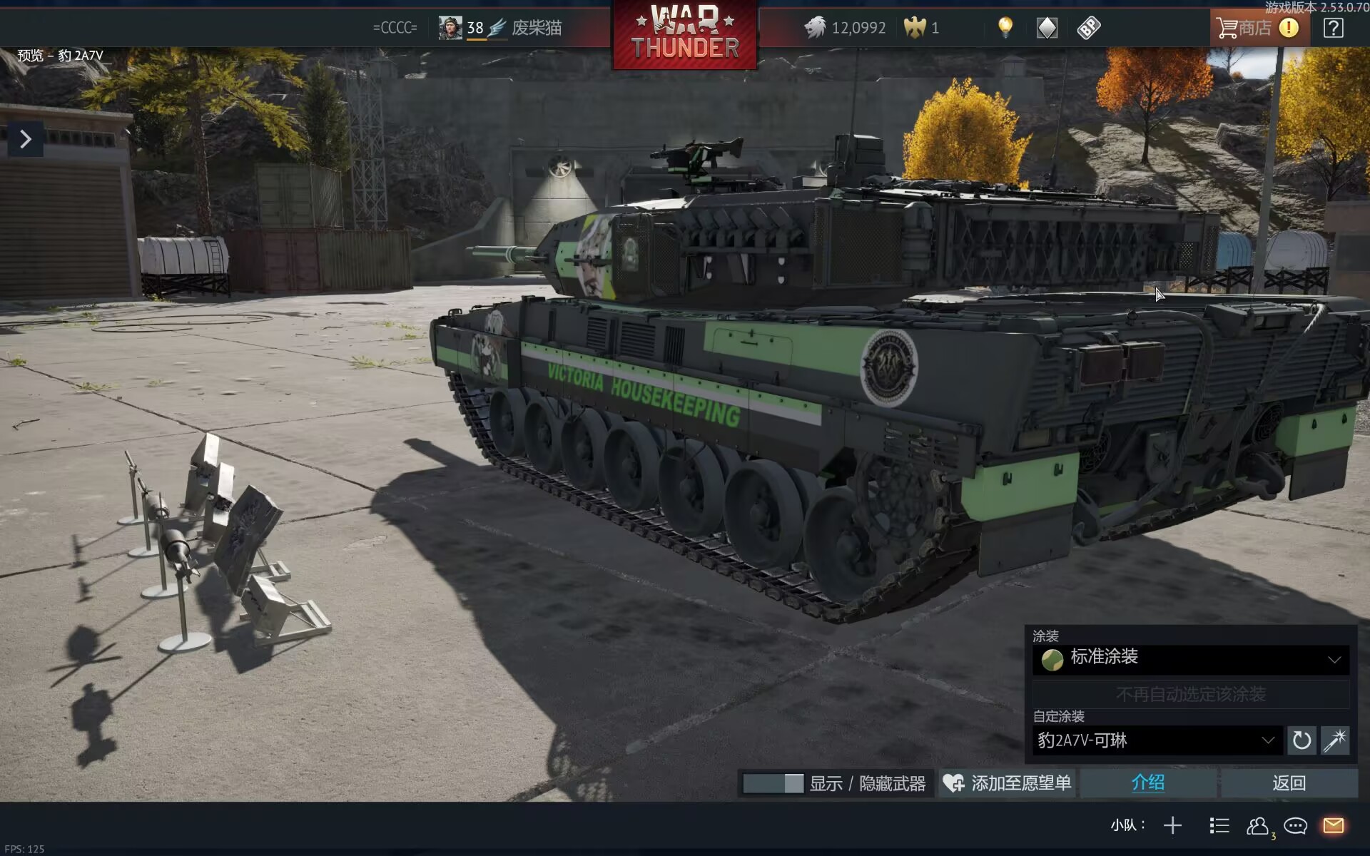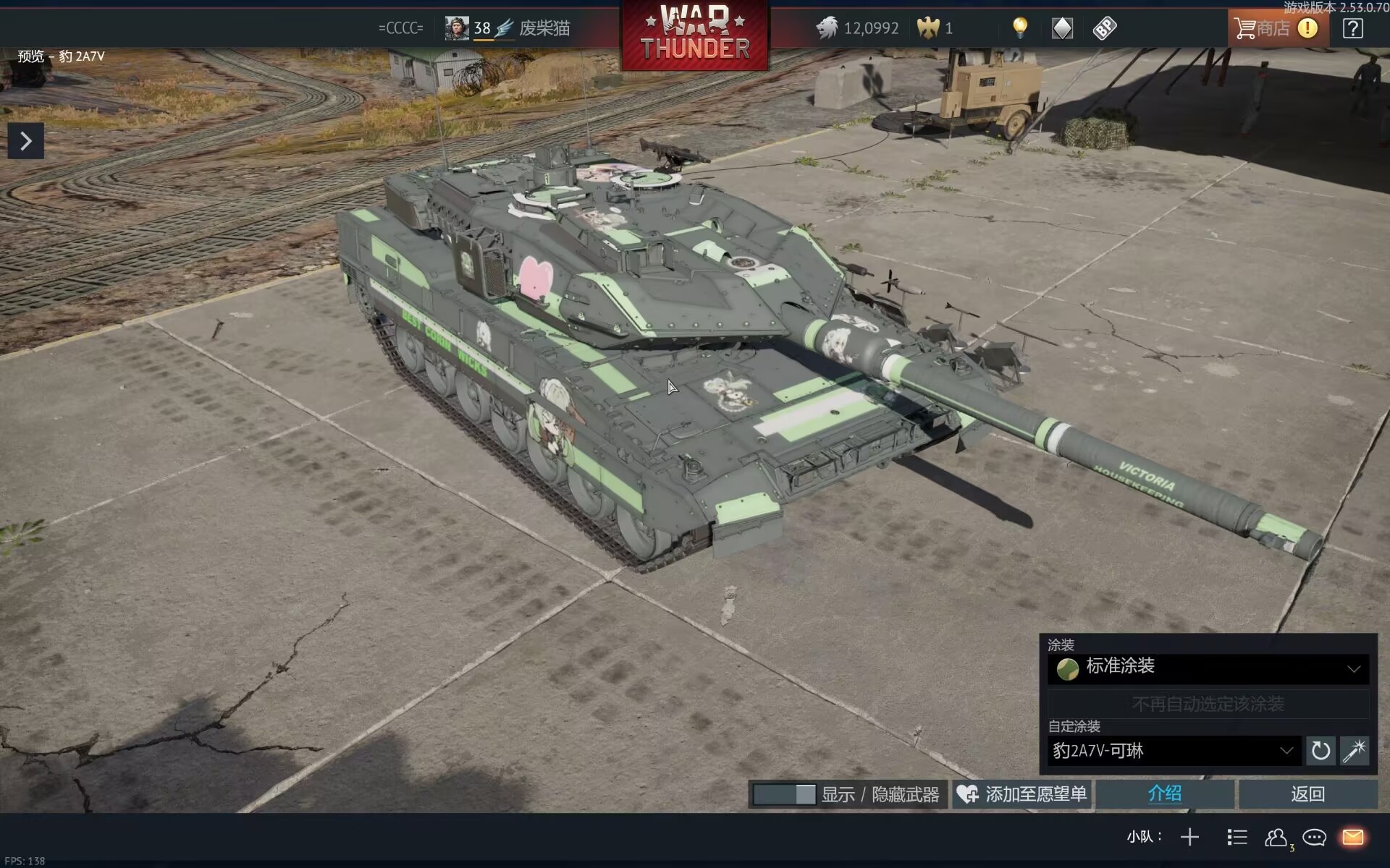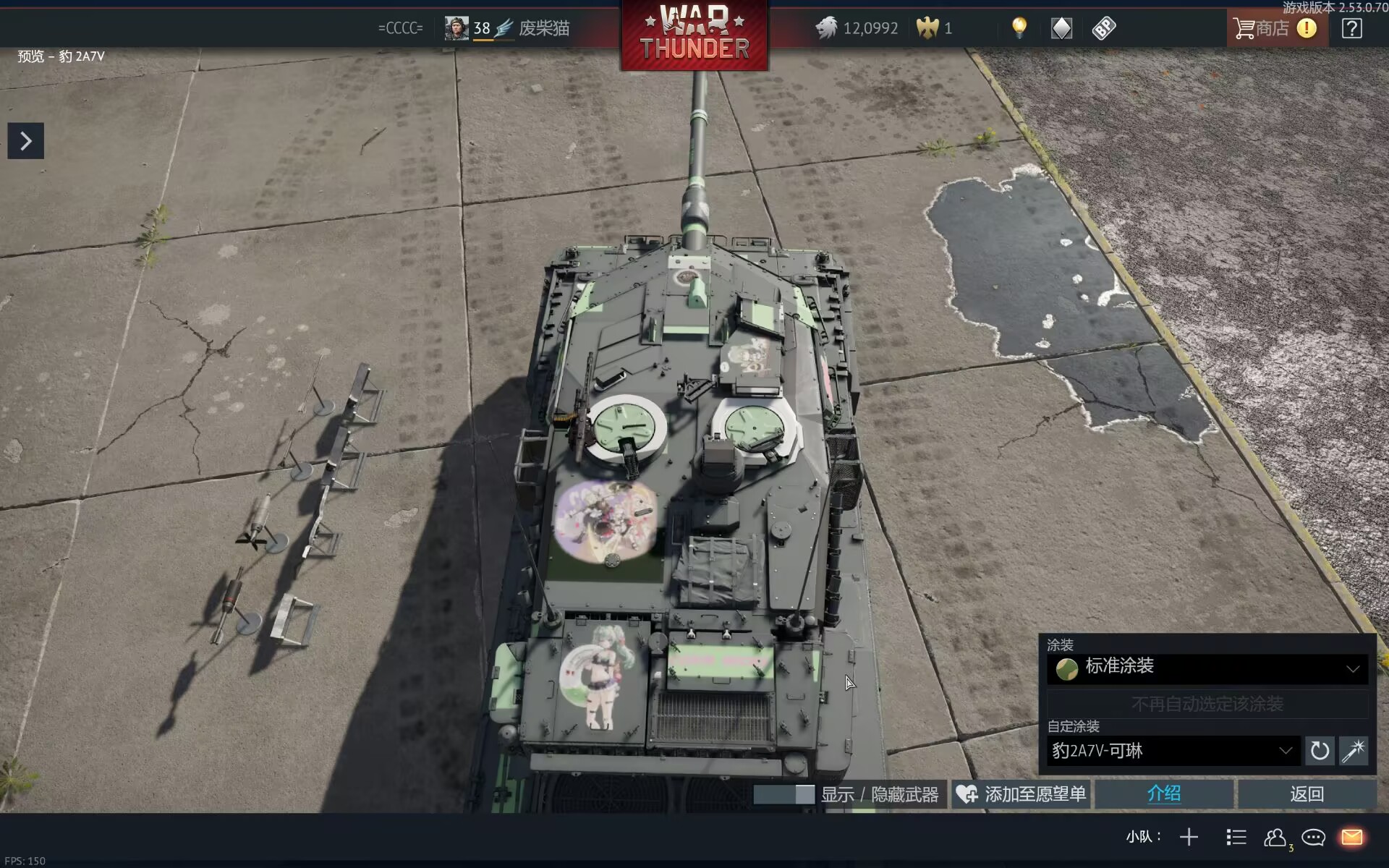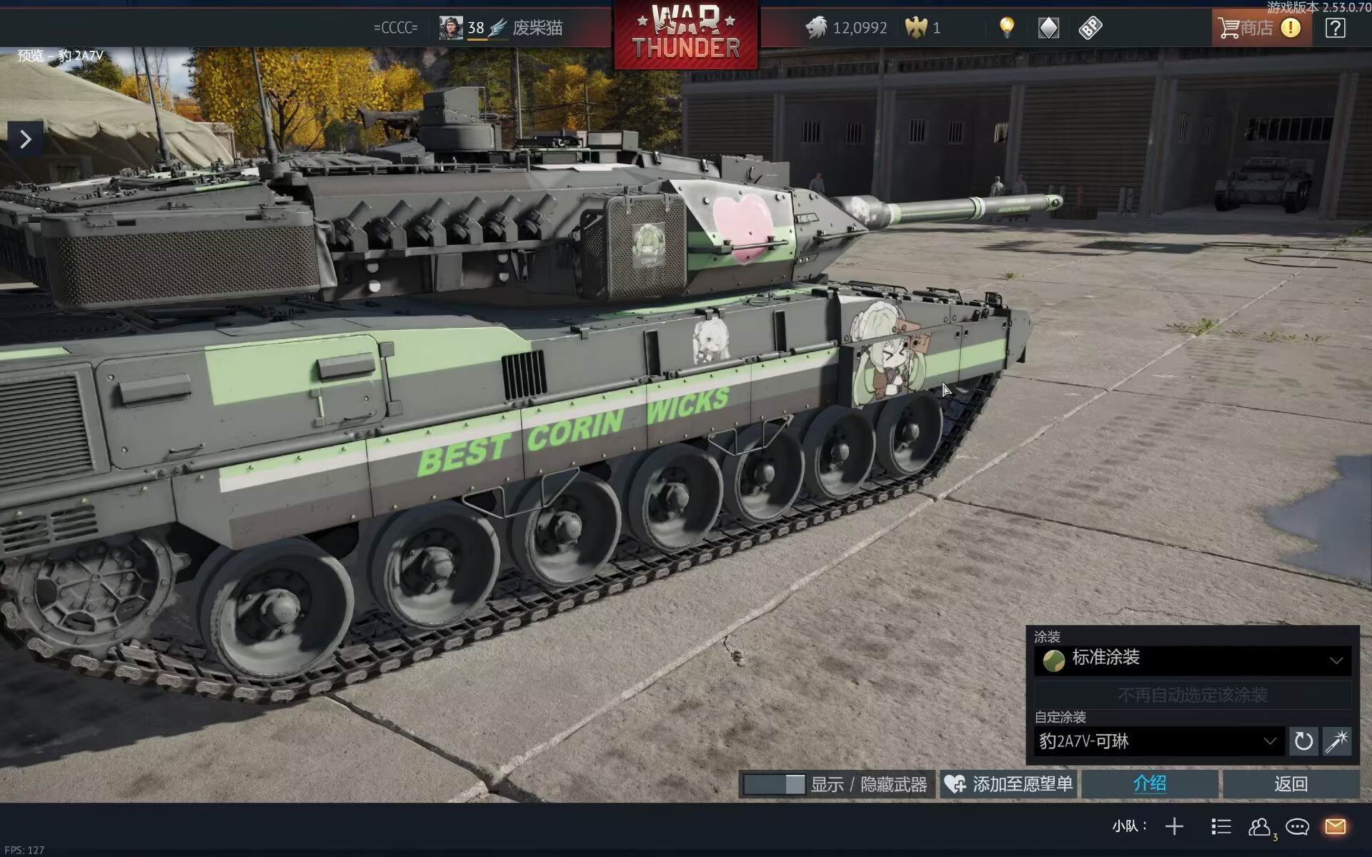 以下为车库截图(因为我没开德系,没有局内视频,大家将就看看吧)