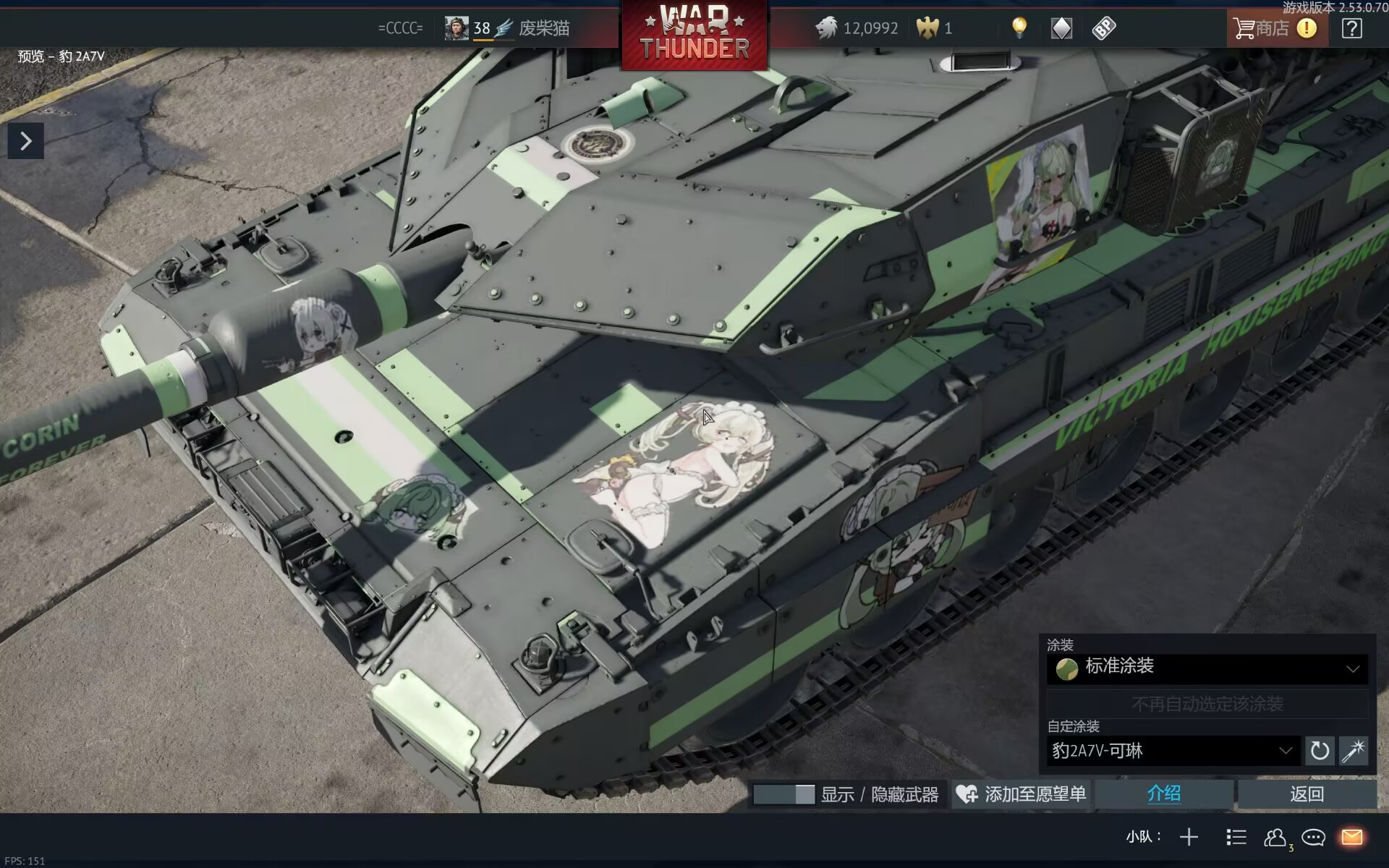 也许这就是本站第一个可琳的车皮!!这也是我第一次制作战雷车皮!
